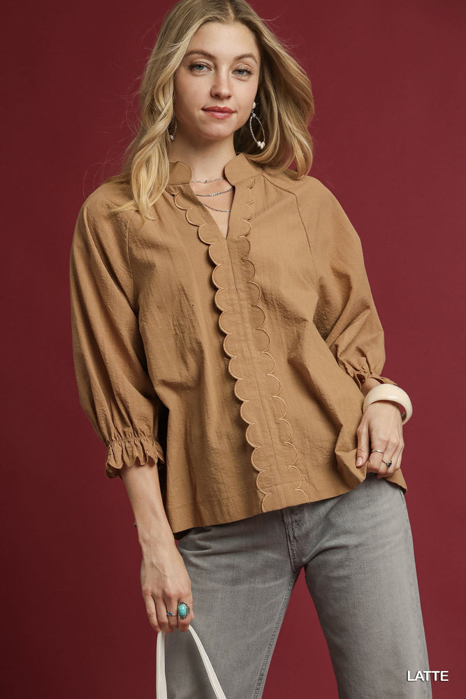 OFF WHITE POPLIN PUFF SLEEVE BLOUSE