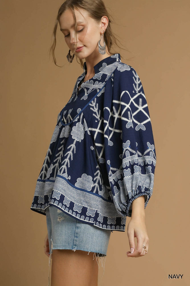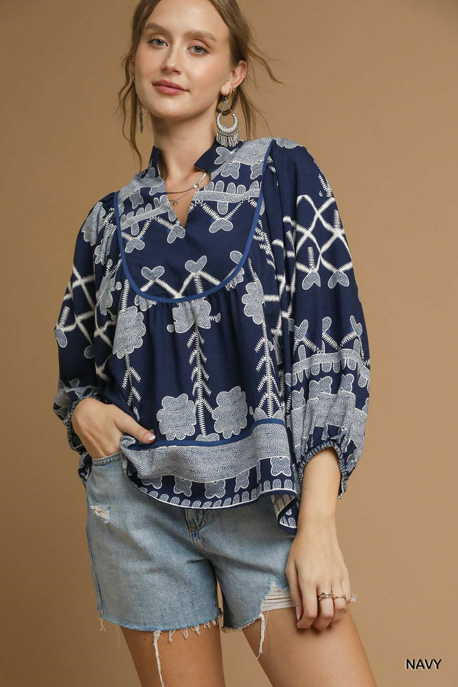 TRIBAL PRINT V NECK TOP